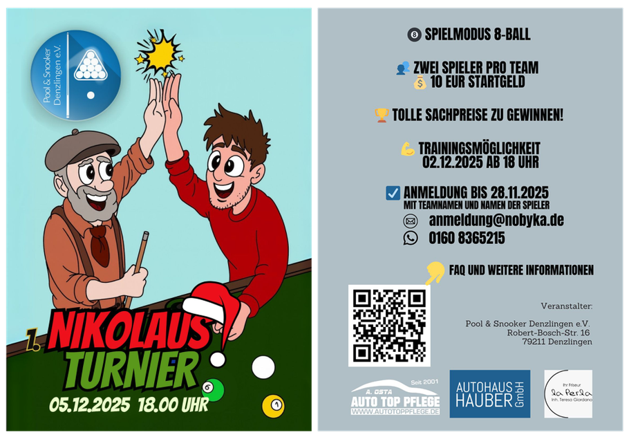 Interessenten aller Spielstärken sind herzlich willkommen - auch absolute Neulinge. In einem kompetenten Umfeld kann von einer fundierter Anleitung profitiert werden. So wird mittwochs Training sowohl für Pool (Bernd Feierabend) als auch für Snooker (Stefan Linckh) angeboten.